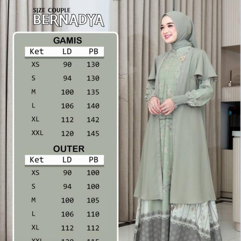 * SPESIFIKASI COUPLE BERNADYA BY SS HIJAB* Mempunyai 4 pilihan warna : - DARK BROWN - TEAL GREEN - SOFT PURPLE - SAGE Menggunakan Bahan : *YORIS & TOPAZ MOTIF * •• *SPESIFIKASI GAMIS MOM* •• Busui Friendly •• Wudhu Friendly •• Menggunakan resleting bobok dibagian depan •• menggunakan manset karet •• terdapat saku sebelah kanan ••terdapat tali samping •• *SPESIFIKASI SEMI OUTER* •• terdapat variasi Swarovski bagian depan •• variasi layer gelombang bagian tangan •• *SPESIFIKASI KOKO AYAH* •• Berlogo Al-Azzam •• Menggunakan kerah Shanghai •• Terdapat saku bobok dibagian depan •• terdapat metal tag Al-Azzam bagian saku •• Menggunakan kancing berlogo Al-Azzam •• kancing sembunyi •• Terdapat 2 pilihan lengan panjang dan lengan pendek •• Untuk lengan panjang terdapat 1 variasi kancing hidup yang bisa dilepas pasang •• *PILIHAN KHIMAR IBU* •• Khimar basic 90/115 •• Khimar lancip 90/115 •• Pashmina 70/175